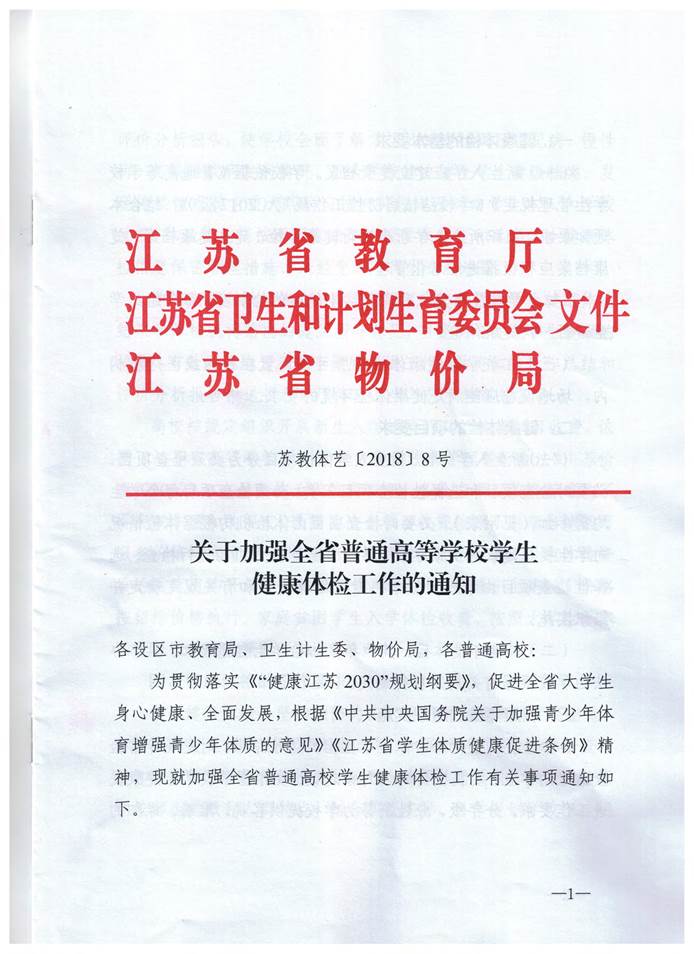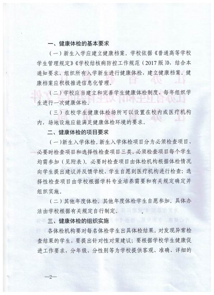 关于加强全省普通高等学校学生健康体检工作的通知